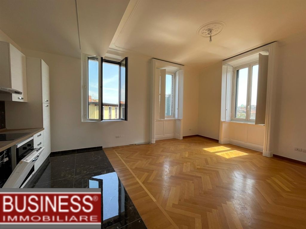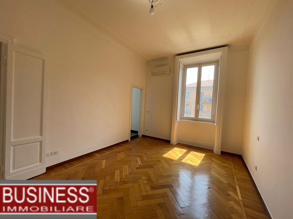 ìR22 - In stabile con ascensore e servizio di portineria, proponiamo appartamento di 120 mq ca. sito al quinto piano e composto da ingresso, soggiorno con cucina a vista, due camere da letto, doppi servizi ed altrettanti balconi. ARREDATO DI SOLA CUCINA. Presente aria condizionata. DISPONIBILITA' IMMEDIATA. Canone mensile Euro 2.630,00 oltre ad Euro 370,00 di spese condominiali. Zona ben servita da negozi e supermercati ed ottimamente collegata con i mezzi di trasporto.