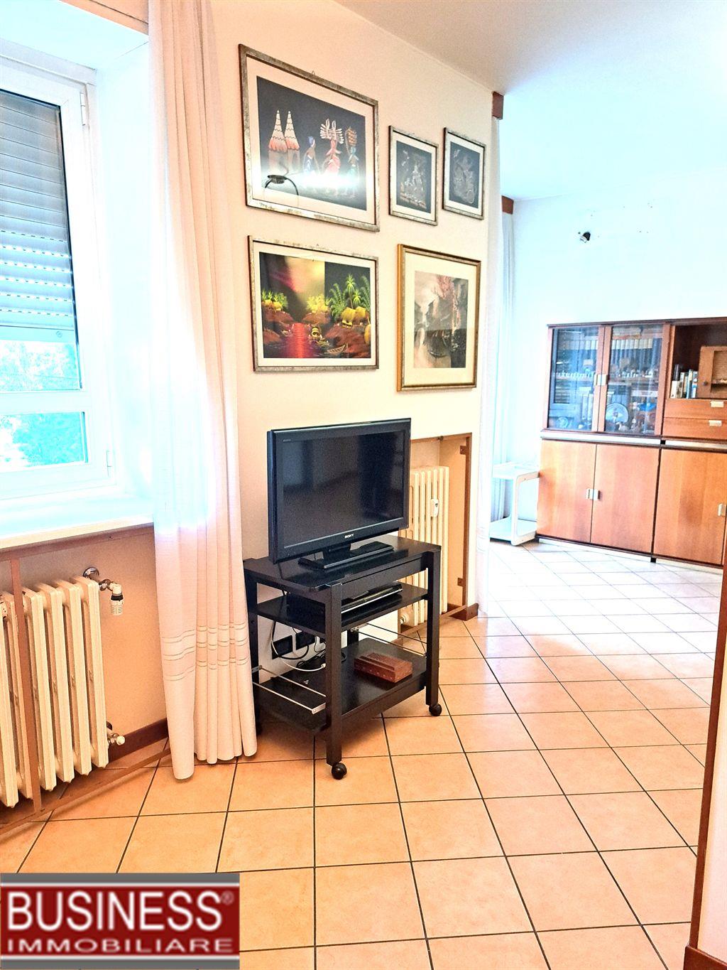 Vimodrone. Via Luigi Cadorna. In elegante contesto di metà anni 60,' con giardino condominiale, ascensore e riscaldamento centralizzato, proponiamo appartamento di 115 mq c.a. al primo piano con tripla esposizione e affaccio sul verde.
